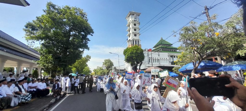 NU NGAWI – Apel dan Kirab Hari Santri Kabupaten Ngawi 2025 digelar meriah di Alun-Alun Kabupaten Ngawi, Rabu (22/10/2025). Kegiatan ini diikuti oleh ratusan santri dari berbagai pesantren dan sekolah Islam di wilayah Ngawi, menampilkan semangat kebersamaan sekaligus refleksi nilai-nilai keagamaan dan perjuangan.